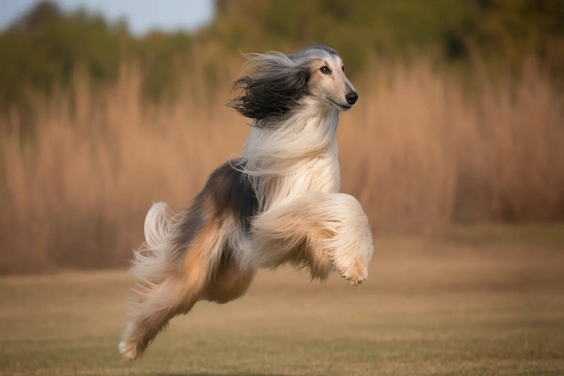 The graceful dog with a long, flowing coat and gorgeous locks was anciently bred in Afghanistan, where it was used for hunting across rugged terrains. Their long legs and aerodynamic bodies help them reach impressive speeds. The dogs are smart and  tend to form a close bond with a single pet parent who interacts the most with them.