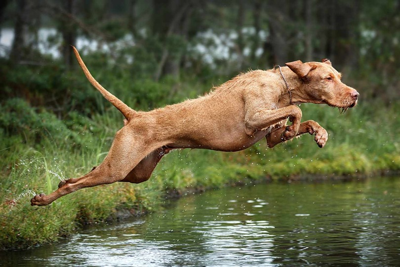 The Hungarian Vizsla, known for its sleek copper coat, comes with a muscular build that provides it with the stamina to run fast. The dogs are high on energy and can go all day exercising. It helps them burn their energy and not indulge in destructive behavior. Despite their high energy, the canines are gentle in nature and thrive in human companionship.